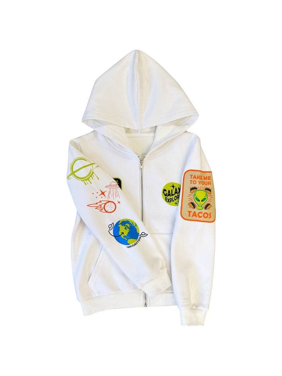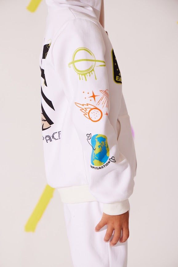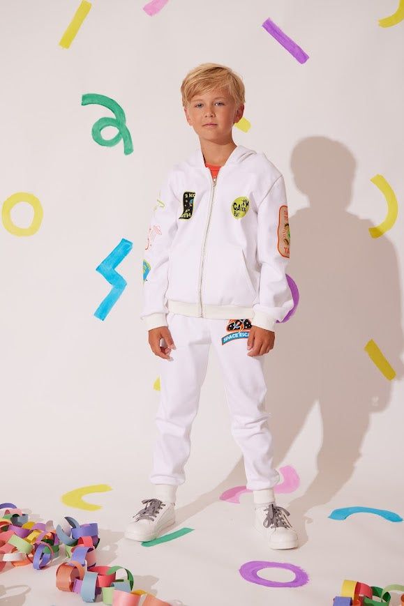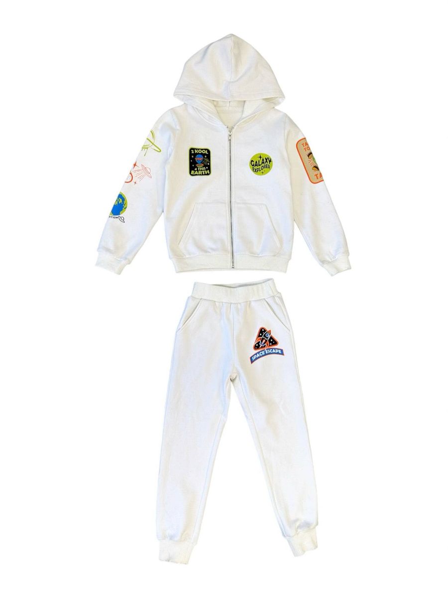 Moderno conjunto "2 Cool For This Earth" que incluye una elegante chaqueta y pantalones deportivos.