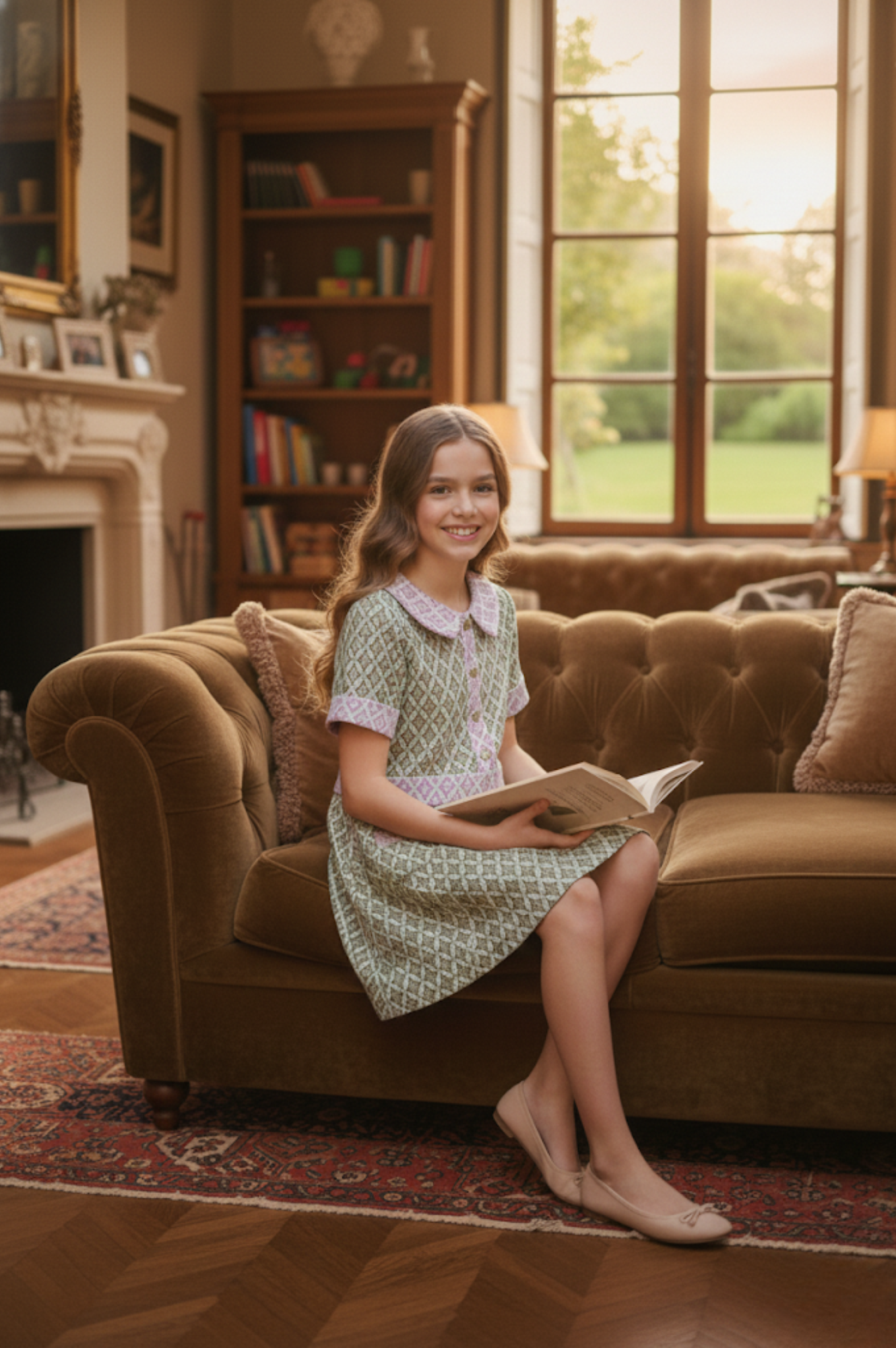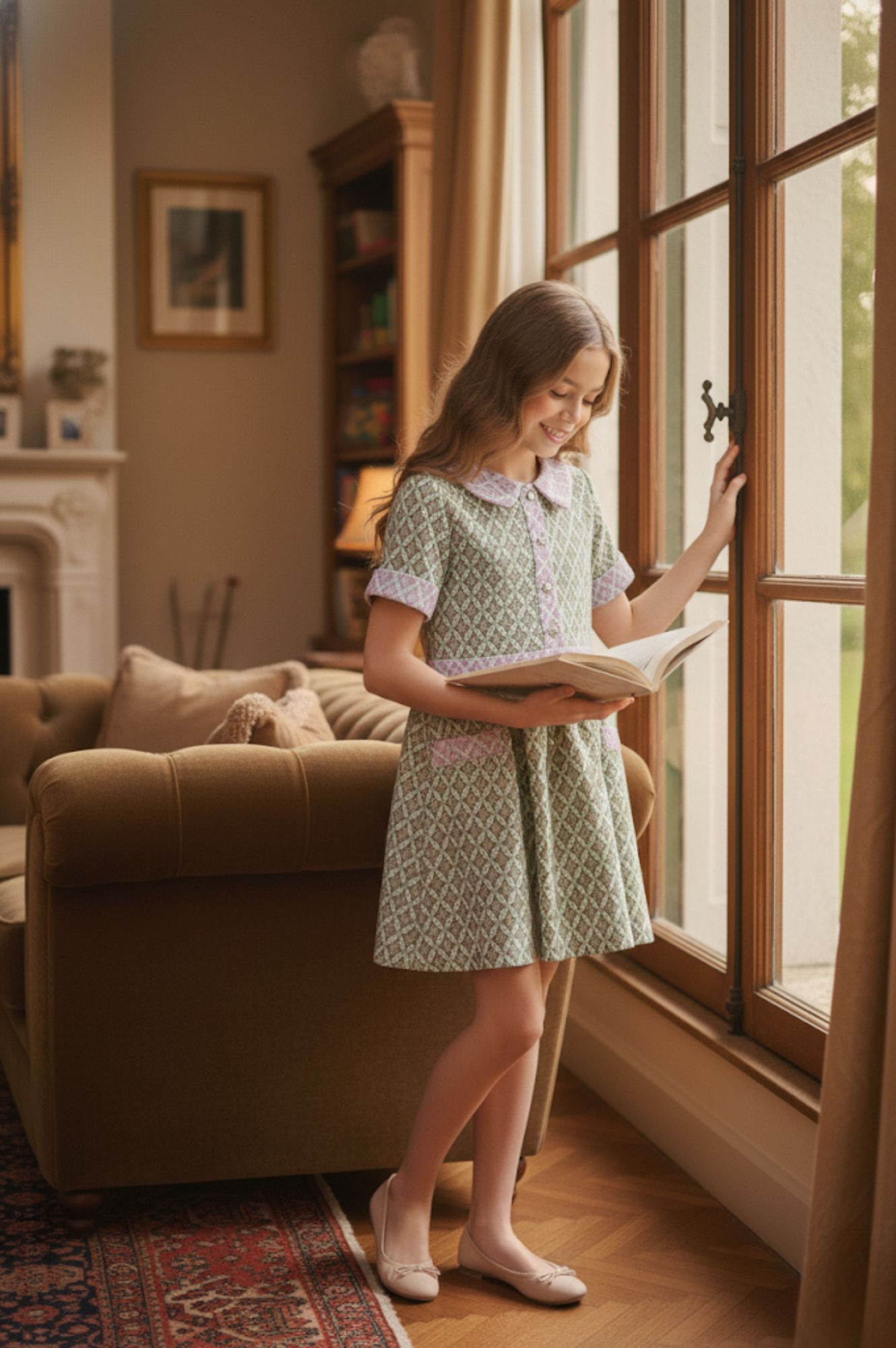 Two Tone Mod Dress w/ Rhinestone Buttons Green